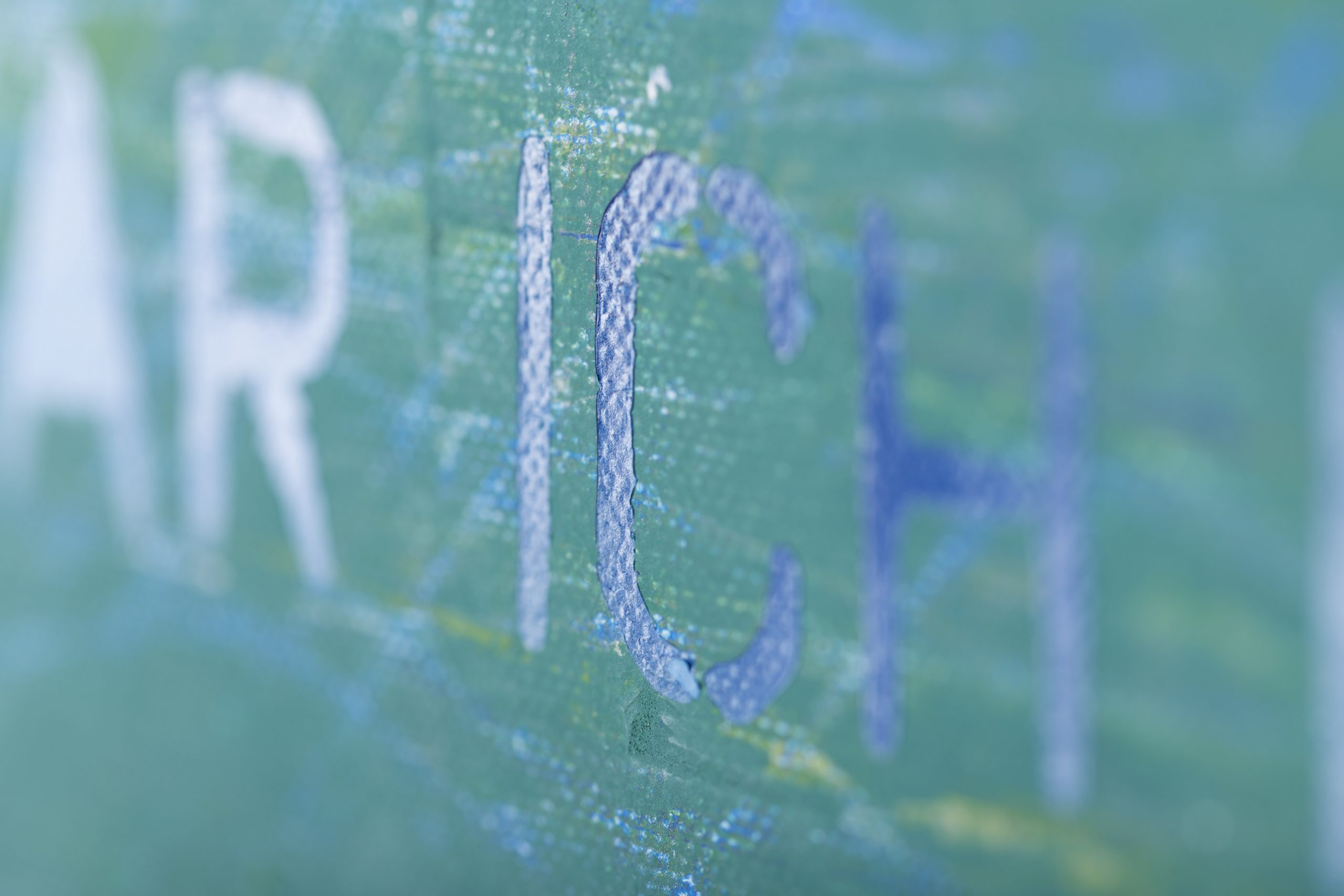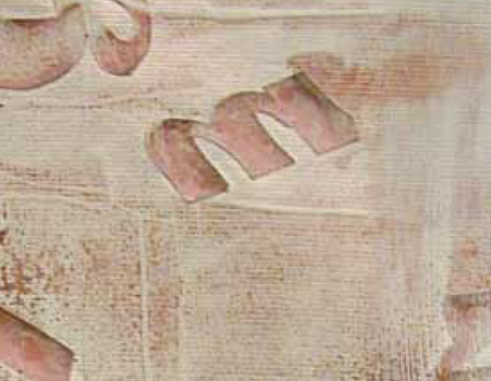 Mit einer textlichen oder bildlichen Inspiration startet der Ideenprozess. In mehreren Schichten wird mit Farbe gespachtelt, wieder mit Lack übersprüht, Textfragmente werden freigesetzt, erneut übermalt und später wieder freigelegt. Texte werden einzeln mit Buchstabenstempel, handschriftlich oder über Schablonen auf das Gemälde aufgebracht.